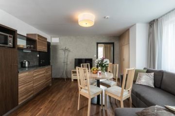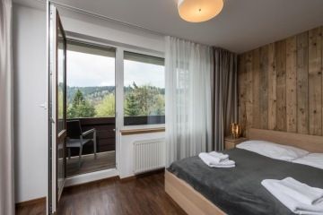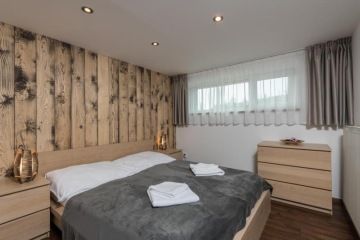 Bezbariérový přístup, plně vybavené rodinné apartmá se dvěma oddělenými ložnicemi a obývacím pokojem.Vlastní vchod ze strany budovy, který vede přímo k pergole a venkovnímu dětskému hřišti.