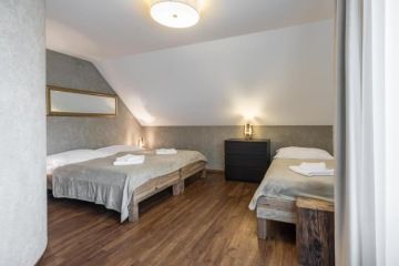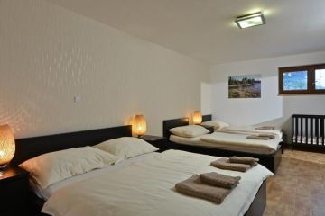 Rodinný apartmán s oddělenou ložnicí ,manželskou postelí a jednolůžkem ve druhém nadpodlaží bez možnosti výtahu.