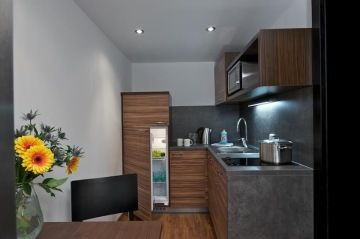 Kuchyňský kout – lednice, mikrovlnka, sklokeramická deska,