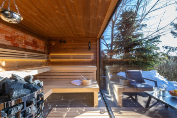 Entdecken Sie die Magie der vollkommenen Entspannung in unserer finnischen Sauna. Nach einem Tag voller Sport oder Wanderungen in den Bergen gibt es nichts Besseres, als Ihre Muskeln zu wärmen und Ihren Geist durch Entspannung zu beruhigen.